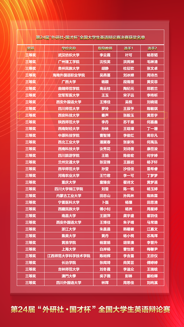 西安科技大学学子在第24届“外研社·国才杯”全国大学生英语辩论赛全国总决赛中喜获佳绩