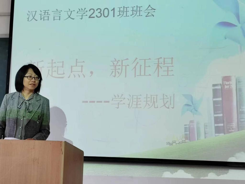 2023年10月31日下午,太阳集团tyc4633汉语言文学2301班在1教116教室召开了主题为“新起点,新征程——学涯规划”的班会。本次班会由班主任宋海婷老师主持,班级32名同学参加。