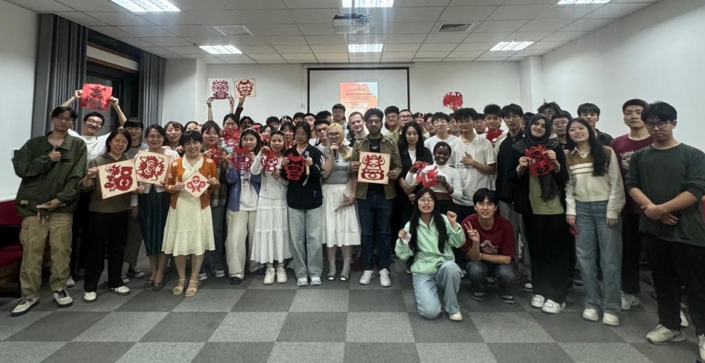 活动中,主持人常家宁对活动主题和具体流程进行了说明,对参与活动的老师和同学进行了介绍,随后全体同学和老师进行热烈的Free Talk环节,现场气氛热烈而有序。随后,全体学生通过一带一路故事分享、剪纸体验等活动进行互动交流,亲身感受中国文化的深厚底蕴。