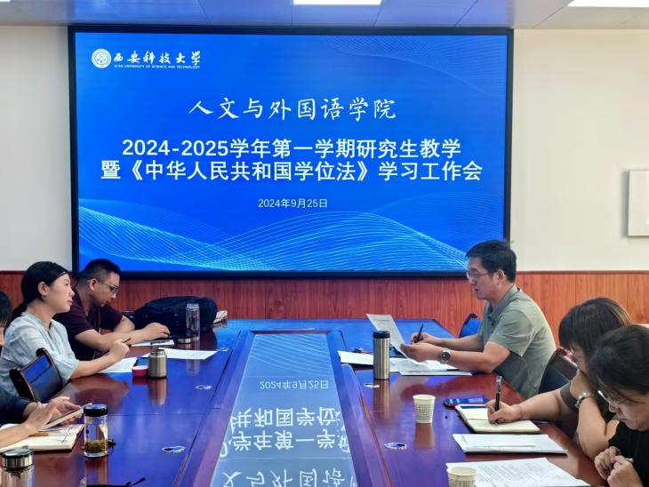 会上,参会教师们共同学习了《中华人民共和国学位法》,并就研究生教学过程中容易出现的系列问题进行了交流和预处理方案探讨。党委副书记邢皓越着重强调了研究生校内外安全问题和就业问题。学院副院长张辉具体解读了新学年学院考核的具体指标,明确了工作重心。外语教研室主任高宝萍和国际汉语教研室杨亚萍对新学年教学工作的重点进行梳理和具体安排。