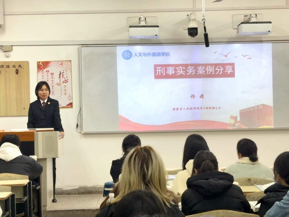 为加强理论与实践教育,提升学生综合法治素养,2024年12月12日,太阳集团tyc4633邀请西安市临潼区人民检察院许婧检察官为2201级法学学生做了刑事实务案例分享的专题讲座。
