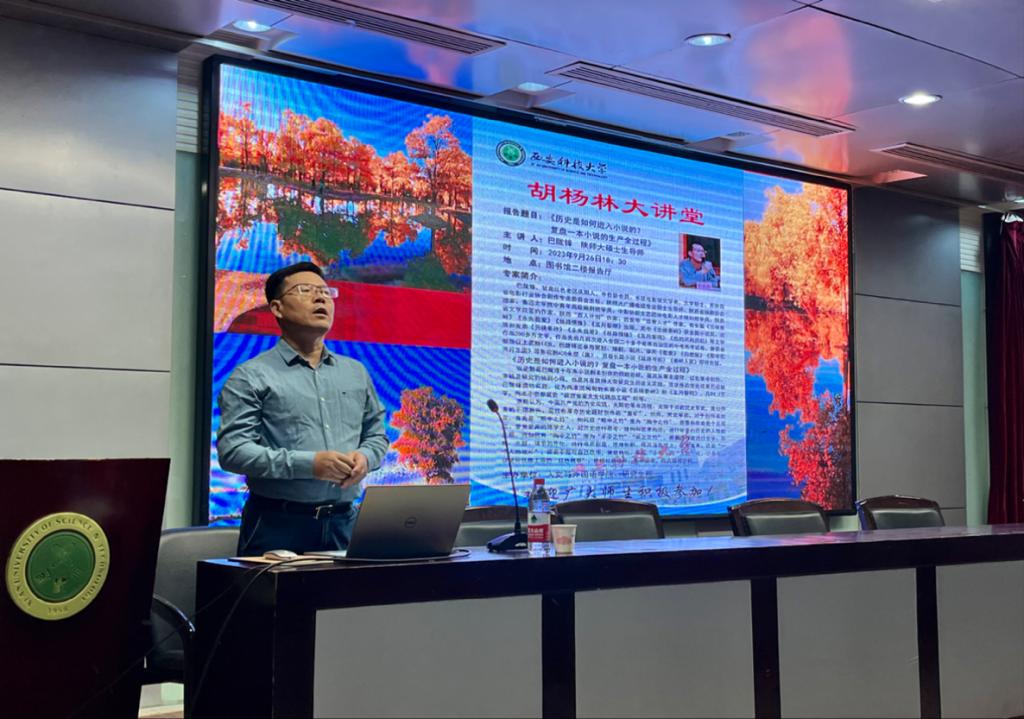 9月26日下午,由太阳集团tyc4633联合研究生院承办的长篇小说写作学术讲座在西安科技大学图书馆二楼报告厅成功举办,著名作家巴陇锋作了题为《历史是如何进入小说的?复盘一本小说的生产全过程》的学术分享。讲座由太阳集团tyc4633副院长张辉主持,高宝萍教授、吴敏焕副教授参会交流,骊山校园400余名研究生参加。