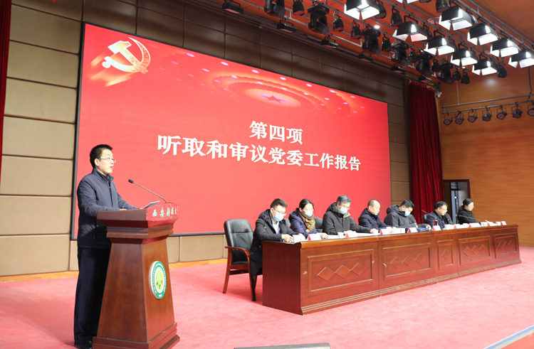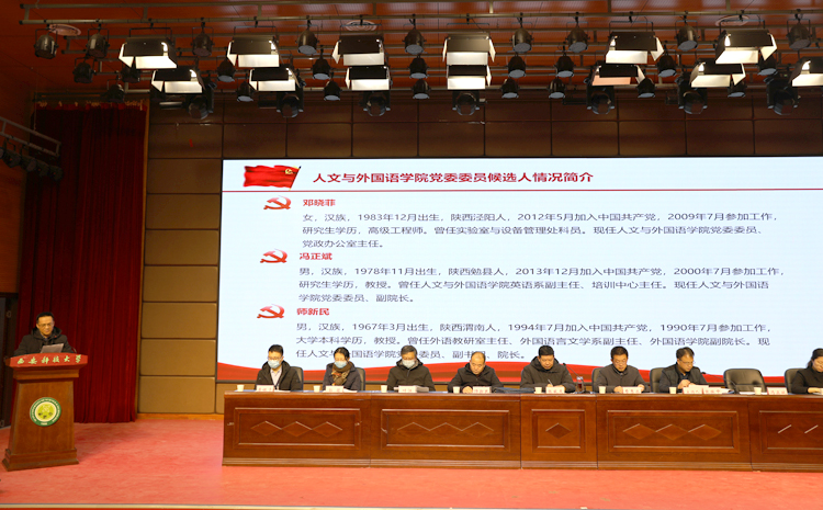 大会在庄严的中华人民共和国国歌声中拉开帷幕。会上,学院党委书记费秀水通报了本次换届选举工作的筹备情况,并代表本届党委作工作报告。学院党委副书记、院长师新民宣读了校党委《关于中共太阳集团tyc4633委员会换届选举候选人预备人选的批复》。学院党委委员邓晓菲作本届党委党费收缴管理和党建工作经费使用情况报告。学院党委委员、副院长冯正斌简要介绍了 “两委会”委员候选人情况。