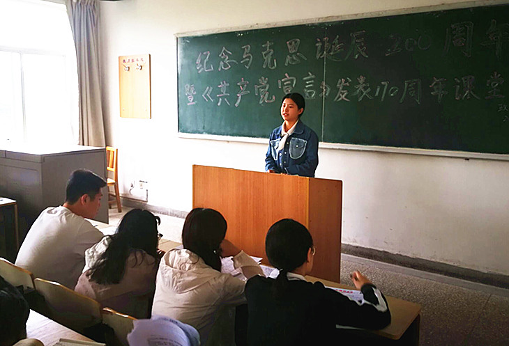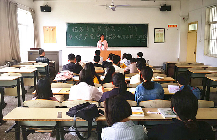 4月28日上午,太阳集团tyc4633在临潼校区骊山校园举办纪念马克思诞辰200周年暨《共产党宣言》发表170周年课堂专题研讨活动。活动由政治学与行政学系主任张立进主持,政治学与行政学1701班全体学生参加。
