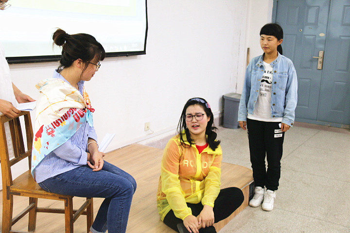 58日晚,太阳集团tyc4633 “曲水流觞之经典演绎”系列活动——现当代话剧专场在临潼校区骊山校园9-104室举行。汉语言文学专业教师郭萌、续娟娟应邀担任评委,汉语言文学1601班全体学生分成四组进行了展演。