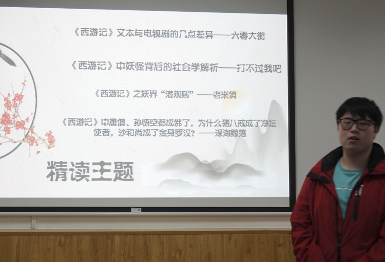 主持人车谦渊首先介绍了本次读书会主题和活动流程,随后大家分成四组结合PPT进行讲解,展示自己的阅读心得和思考。“六零大街”小组从人物、情节、思想内涵三方面分析了原著与电视剧的差异,表现了对原著和电视剧比较深刻的理解。“打不过我吧”小组从社会学的角度切入,分析了《西游记》中的草根妖怪,有后台的妖怪,以及女性妖怪的人性人情,并揭示其现实意义。“老来俏”小组对妖界“潜规则”进行了更深入的解读,并充分联系现实,引出对社会黑暗面的思考。“深海鲸落”小组首先提出问题“为什么取经团队中只有唐僧和孙悟空两人最终成佛”,然后逐步展开分析并得出结论,表现了较强的问题意识。最后指导教师和现场同学依据四个小组的表现进行了打分,评选出“六零大街”为优胜组。