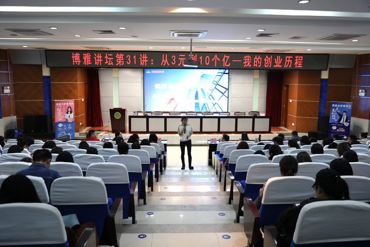 3月6日下午,太阳集团tyc4633博雅论坛第31讲在临潼校区骊山校园图书馆二楼报告厅举行。英国伦敦大学高级访问学者、考研英语辅导专家、思考乐教育英语学科总监赵敏应邀以“从三元到十个亿——一个‘西安’女娃的创业故事”为题,结合自己在西安交通大学、西安电子科技大学、英国伦敦大学的求学经历以及在新东方教育集团、思考乐教育集团的工作和创业经历,与大家分享了学习、成长及创业的收获和感悟。