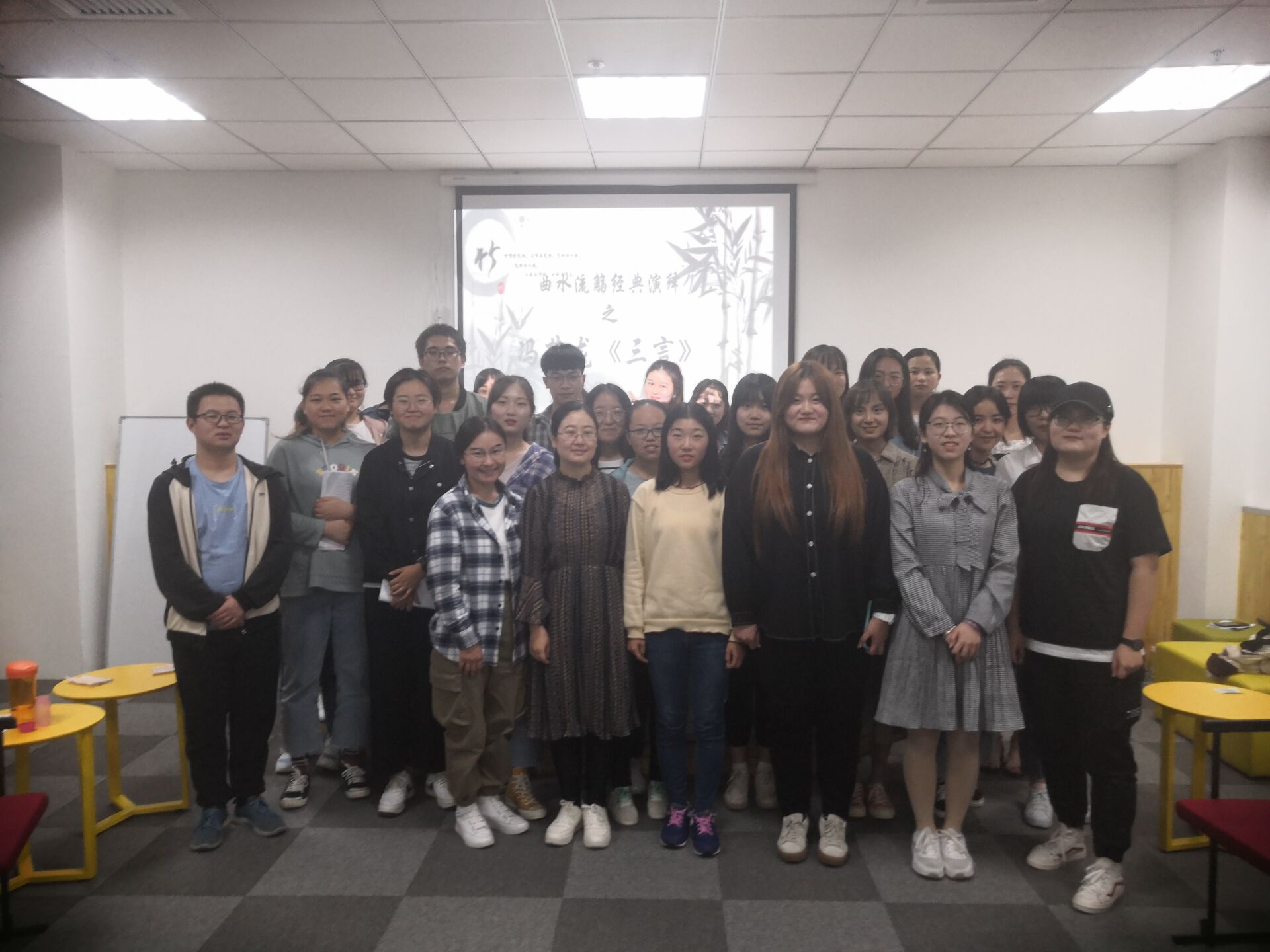 2019年9月 26日晚六时许,太阳集团tyc4633在临潼校区骊山校园图书馆一层创客空间举办“曲水流觞•经典演绎系列活动之冯梦龙《三言》传奇”。本次活动由太阳集团tyc4633主办,汉语言文学1801班承办,汉语言文学专业老师续娟娟担任指导老师。汉语言文学专业2018级全体同学参加本次活动。