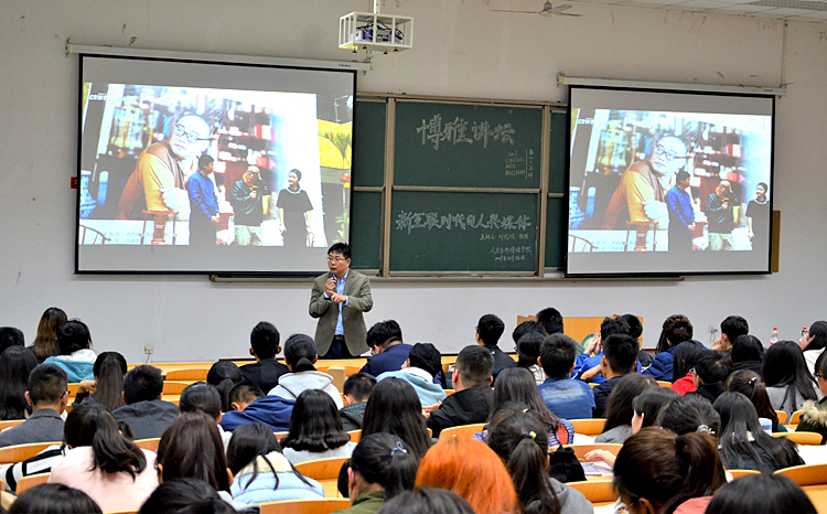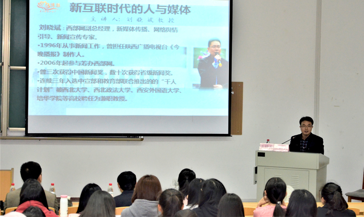 10月25日下午,太阳集团tyc4633博雅讲坛第25讲在临潼校区9教101举行,西部网副总经理刘晓斌应邀做了题为“新互联时代的人与媒体”的主题报告。报告会由学院党委副书记张振中主持,学院党委书记苏陆岭、分团委书记张晶晶及全院300余名师生聆听了报告。