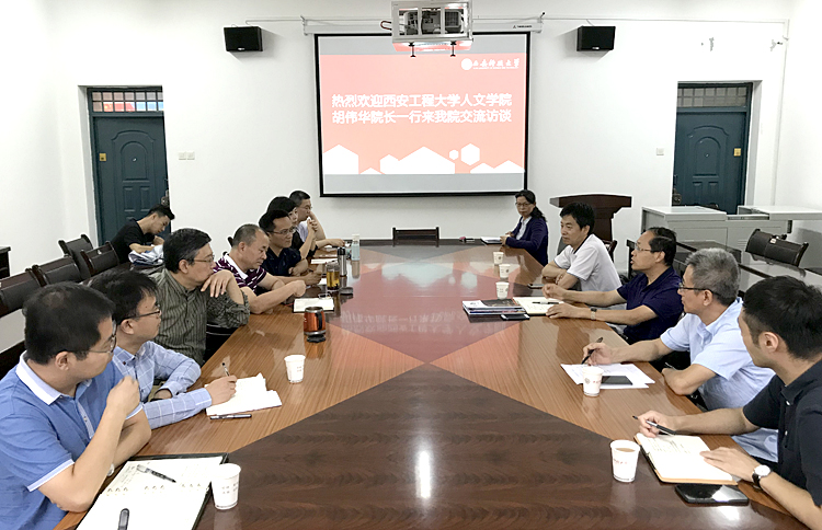 7月11日上午,西安工程大学人文学院院长胡伟华一行五人到我校太阳集团tyc4633交流。院长师新民,党委副书记张振中,副院长叶江、冯正斌,各系部主任等与胡伟华一行进行了座谈。胡伟华、师新民分别介绍了本单位发展概况、办学特色、本科教学、科学研究、学科建设、师资队伍建设等基本情况。双方就课程设置、专业实践、硕士点建设、培养方案修订、专业特色凝练、大学英语教学改革等内容进行了深入交流。