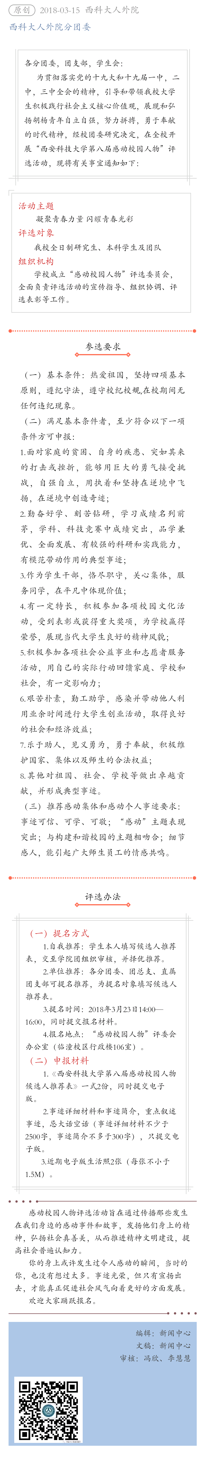 关于举办“西安科技大学第八届感动校园人物” 评选活动的通知