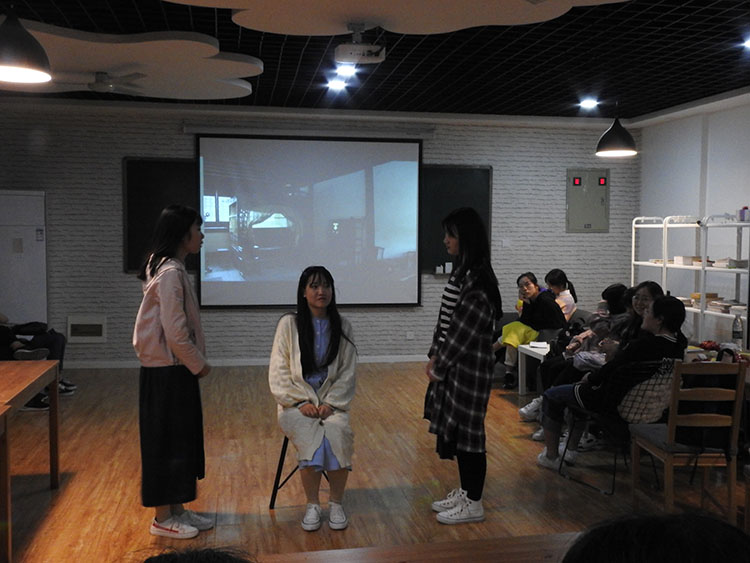 第一组“如来佛”组以短篇小说《靠不住的手》为例来阐明赵树理质朴的文学风格,通过借用不同时代的文学家、评论家对赵树理的评价,结合自己的阅读和分析,对赵树理的风格进行较为深入的解剖。第二组“七零大街”组以情景剧《浪潮起伏中的赵树理》展现了赵树理的人生历程,并对赵树理的创作方向、风格、特征进行了分析和介绍。第三组“老来俏”组以话剧的形式演绎了茅盾的作品《子夜》中吴老太爷到上海的情景片段,通过对《子夜》中“浪漫”与“颓废”元素的探究,结合相关书目的评价,深入分析《子夜》作品风格和人物特色。第四组“香草美人”组通过展现茅盾作品中不同的女性形象进而剖析茅盾文学中的时代女性特征。第五组“五颜组”通过演绎郭沫若的话剧《棠棣之花》解读郭沫若历史剧中的人物形象特征。最后由现场同学和教师根据五个小组的现场表现投票,评选出“五颜组”为优胜组。