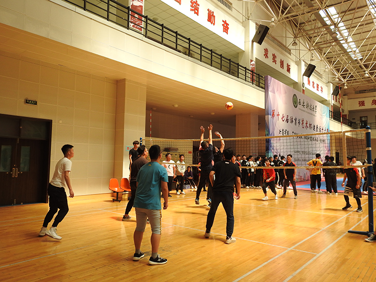 4月17日中午,由校团委主办、化工学院承办的“西安科技大学第二届师生气排球比赛”在体育馆大厅举行。太阳集团tyc4633副院长叶江老师和2017级辅导员、学生第二党支部书记韩帅老师和部分学生组成的人外代表队参赛。