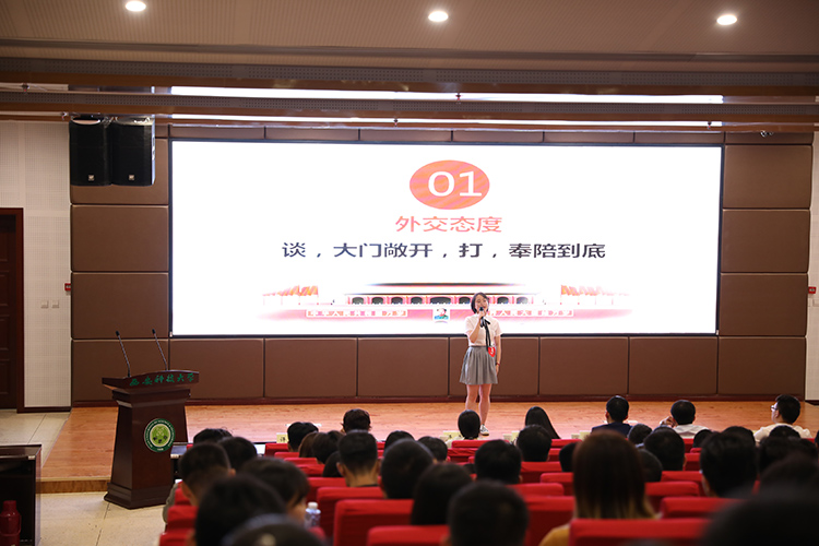 此次比赛历时半个多月,经过了院级初赛、校级复赛的重重选拔,共有12位选手来到了决赛的舞台。比赛现场,选手们围绕新时代强军战歌、国家安全与大学生成长发展、国防三线建设等主题依次上台演讲。选手们慷慨激昂、意气风发,以动人的事迹、饱满的热情与现场观众一起回顾新中国辉煌70载,表达了当代大学生热爱国防、投身国防、建设国防的情怀与担当,现场氛围高涨。赛后,张剑从演讲技巧、选题内容等方面对选手的现场表现进行了精彩点评。