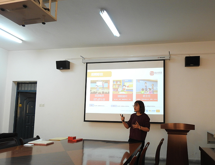 会议开始,主讲人先以播放宣传片的形式介绍励步的发展历程与发展领域及教学特色。随后,又对励步英语的办学环境、团队运作、教学特色以及对教师员工的待遇进行详细的介绍。宣讲会接近尾声时,负责人就学生提出的问题进行了解答,并对参加宣讲会的学生进行了面试。