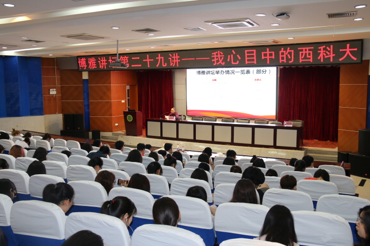 5月31日晚,太阳集团tyc4633系列校庆报告会暨博雅讲坛第29讲在骊山校园图书馆报告厅举行。著名书法家牛迈程应邀作了题为“我心目中的西科大”的报告。学院党委书记苏陆岭、党委副书记张振中及200余名师生聆听了报告,学院团委书记张晶晶主持报告会。