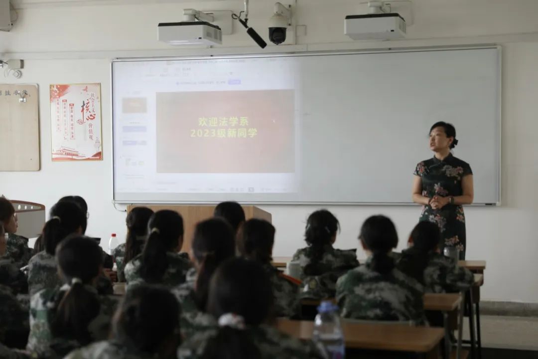 学院教师代表法学系高战辉致欢迎词,勉励同学们在大学里以学业为重,不断开拓视野,提升人文素养、道德修为,努力成为一个成熟、有担当、有作为的大学生。