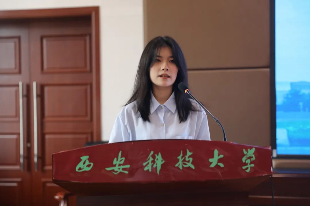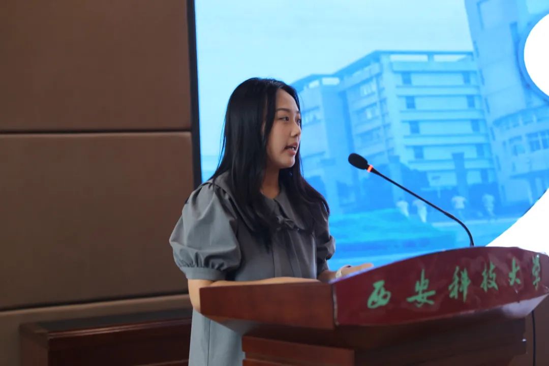 张心雨以“转变心态,做笔耕不辍的学者”、“脚踏实地,做砥砺深耕的前行者”、“不忘初心,做舍我其谁的有志者”总结过去一年研究生的学习感悟,激励同学们以求真务实的态度探索未知,传承西安科技大学“励志图存,自强不息”的精神。