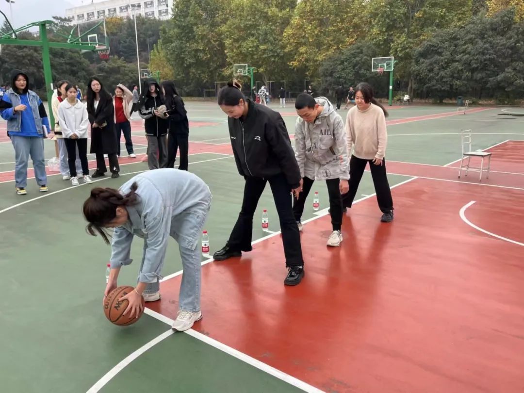 赛上,文体部王景琪就相关规则与注意事宜进行说明。所有参赛成员分组依次进行比赛。伴随着一声哨响,游艺篮球赛拉开序幕。运动员们通过背靠背运球、保龄球队内接力、胯下运球的方式展开激烈角逐,现场气氛热烈。