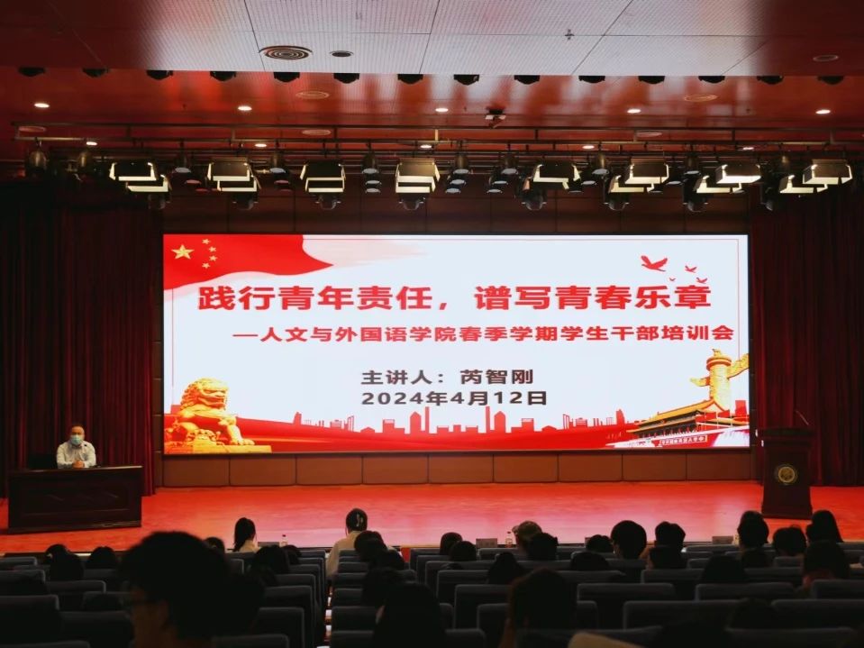 最后,芮智刚以《践行青年责任 ,谱写青春乐章》为主题,从“什么是学生干部”、“学生干部的作用”、“怎样成为一名优秀的学生干部”三个方面进行了培训,希望全体学生干部要不断强化服务意识,发挥带头作用、纽带作用、凝聚作用和服务作用,并对学生干部提出几点要求:一是要坚定理想信念,争当理论学习“排头兵”,思想进步“带动者”,善学善思、善谋善为、善作善成。二是要明确自身定位,做到“为学生,做干部”、“为学生做干部”,充分发挥学生干部的带头、纽带、凝聚、服务作用。三是要树立青年榜样,牢记“四讲四有”,争做忠诚可靠的接班人、勤学善思的学习者、担当有为的实干家。四是要勇于担当责任,做到凡事讲政治、谋事预则立、处事有方略、遇事迎难上,争做奉献担当的青年表率,服务同学的青年先锋。