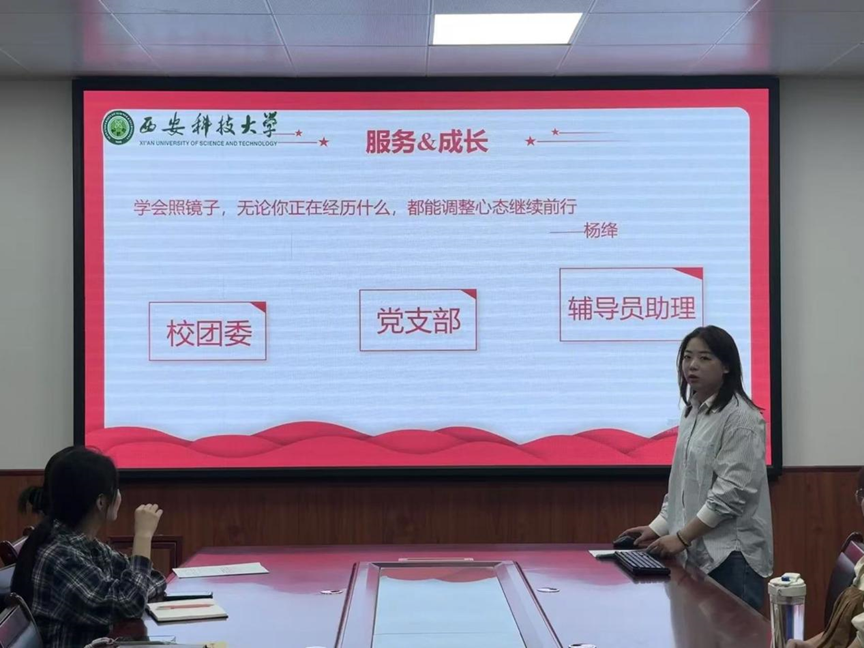 凌丹彤以《暑期大学生到政府机关见习感悟分享》为题,介绍了暑假期间在西安市体育局的见习经历,使同学深刻感受到了实践在职业规划中的重要作用。