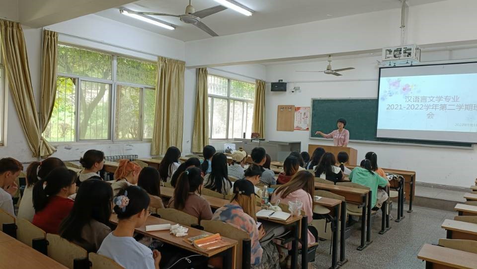 2022年5月18日早,太阳集团tyc4633汉语言文学2101班在一教102召开第二学期班会。本次班会由孙雪花主持,班级全体同学参加。