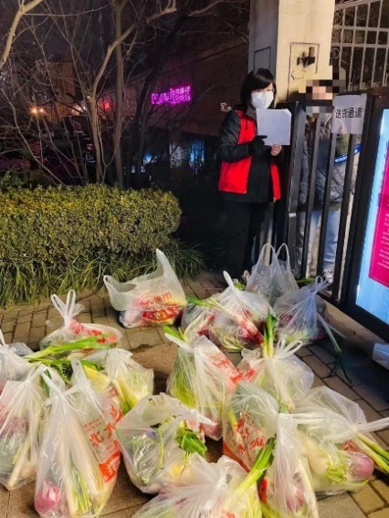 同时,我院教工第二支部潘小玉、张小涓也积极投身防控志愿活动。潘小玉自2021年12月28日起自愿申请成为曲江新区华侨城108坊社区志愿者,在中海东郡小区作为“党员先锋防疫志愿者”小组组长为10号楼96户发放物资;每天给有老弱病残及孕产妇的住户提供上门服务(送生活用品、药品、跟进上门核酸检测);挨户通知及时做核酸检测,做到应检尽检。张小涓在2022年1月4日与电控学院赵永秀等四位教师一起做志愿者,负责西安科技大学东院24栋、25栋楼、小二楼的核酸检测登记。由于一码通故障,整个过程持续5个多小时。教师们一直坚守岗位到任务完成。下午晚些时候,志愿者还帮忙将爱心菜给27栋住户逐户送上门。