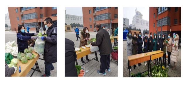 1月6日下午,四川巴中老区捐赠的爱心菜送到西安科技大学北院家属区,同属大英二部的教师郭小芸与李焱一起,主动参加志愿者服务,在学校相关部门的有序组织下,冒着严寒为北苑住户领菜。现场分工明确,组织有序,经过两个多小时热火朝天的奋战,家属区的全部老师们领到了这些爱心菜。