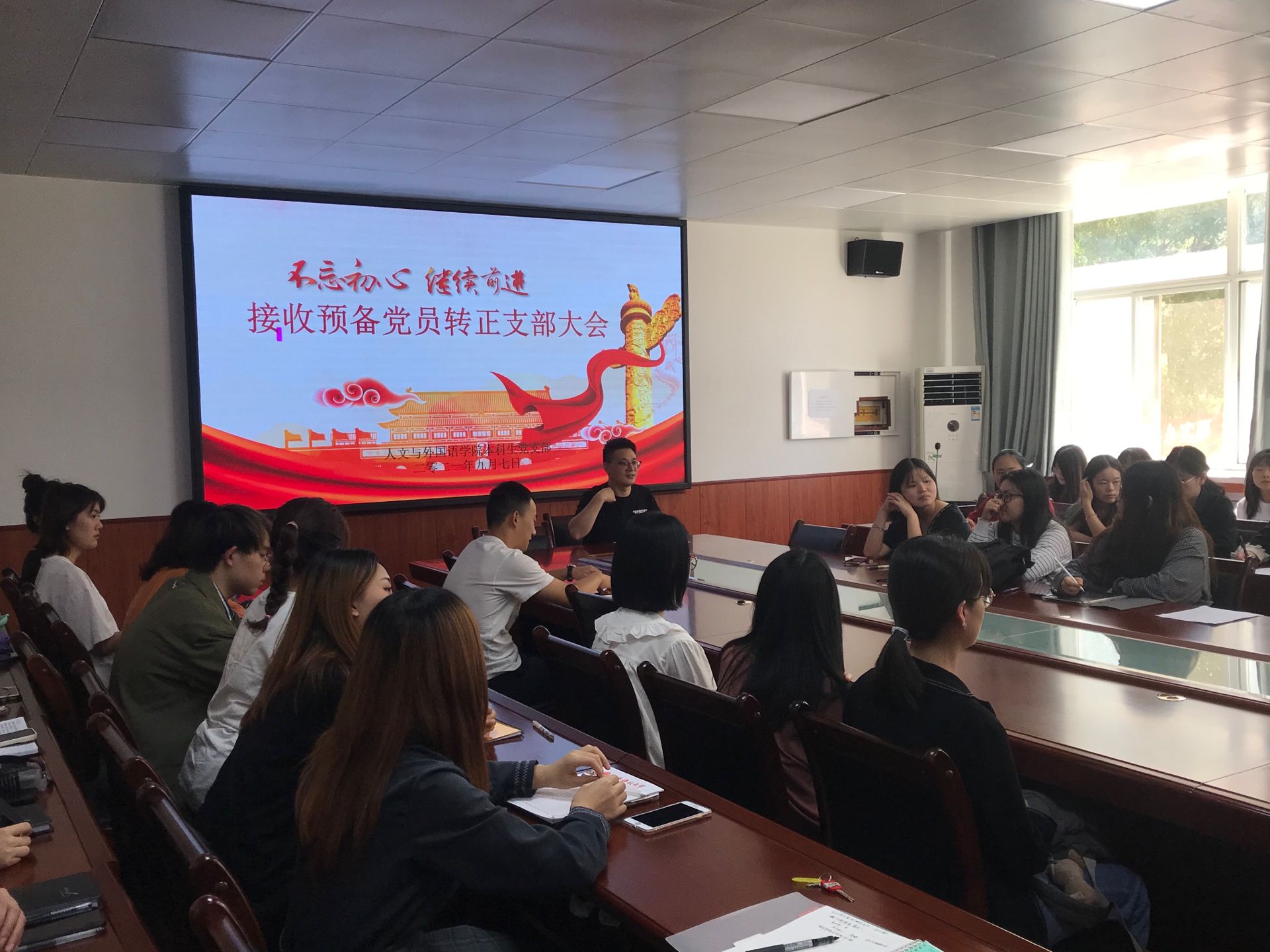 9月7日,太阳集团tyc4633本科生党支部于二教226会议室召开接收预备党员转正支部大会。学院党委副书记张振中、本科生党支部书记李银亮以及全体18级、19级预备党员参加此次会议。