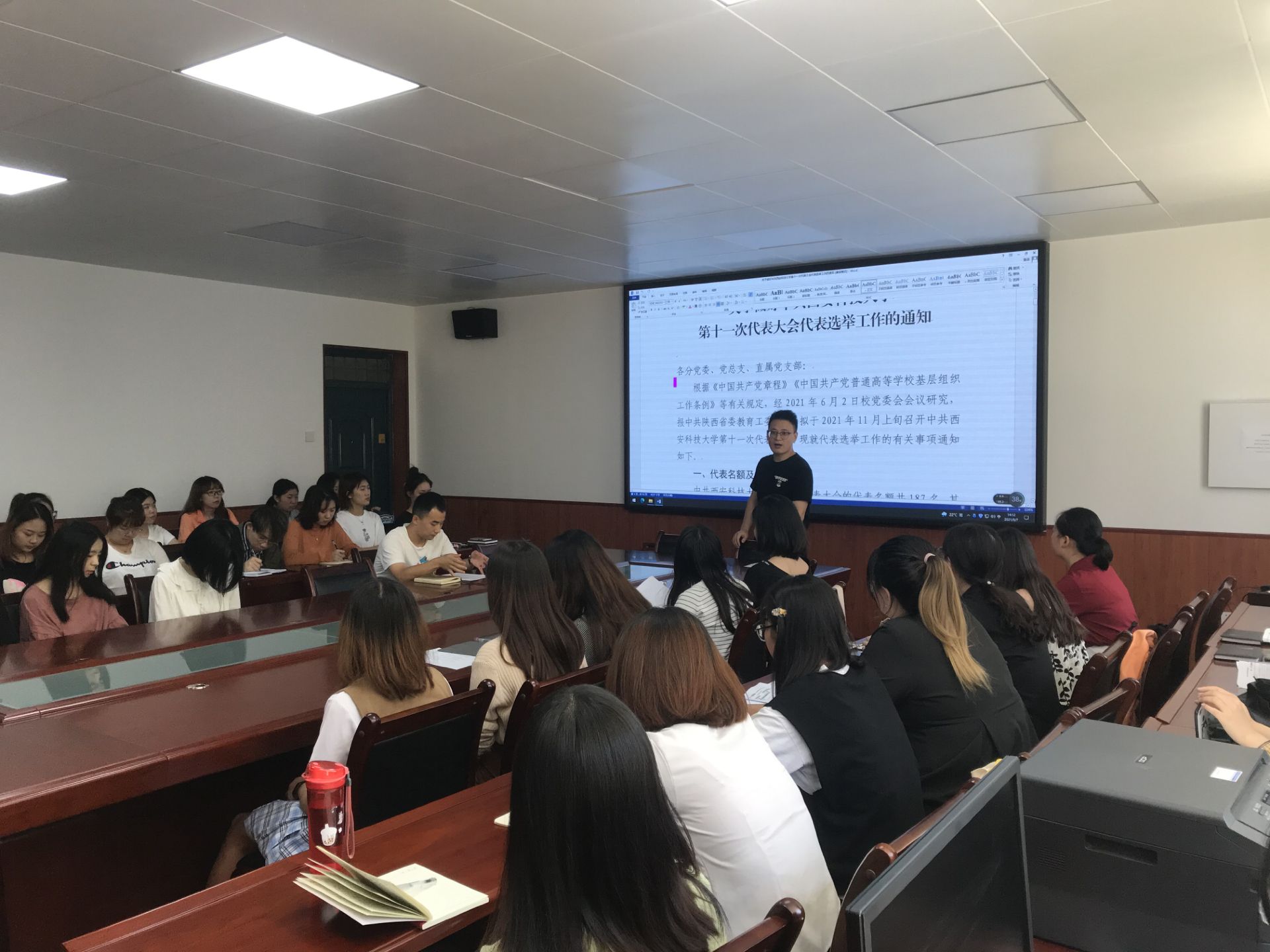 大会开始,李银亮同志首先介绍了学校第十一次代表大会选举文件以及预备党员转正流程,包括转正所需的各项申请材料,说明党支部严格按照程序讨论转正。