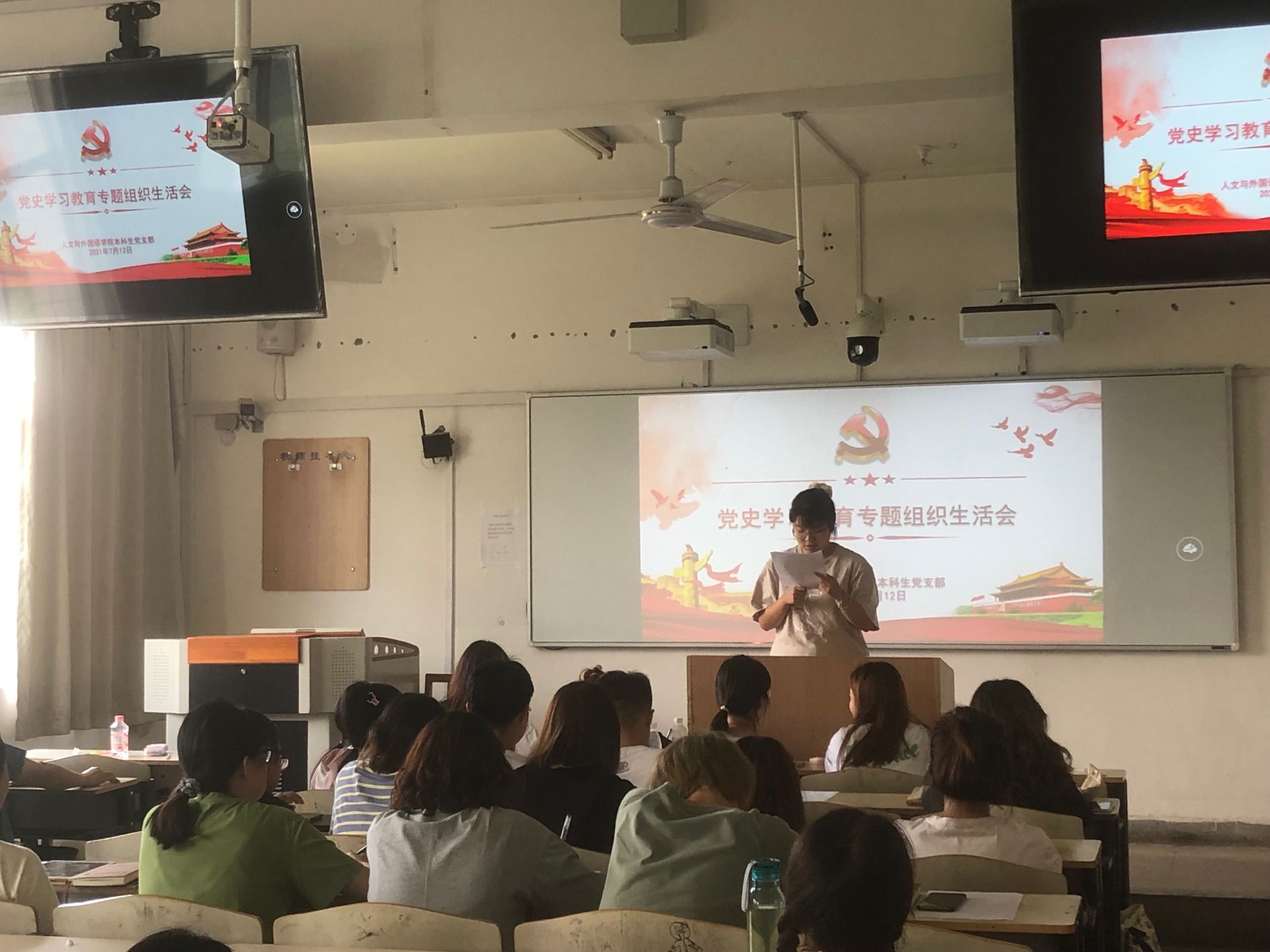 7月12日,太阳集团tyc4633本科生党支部组织开展党史学习教育专题组织生活会,会议由本科生党支部书记李银亮主持,党委副书记张振中、全体党员、入党积极分子代表参加会议。