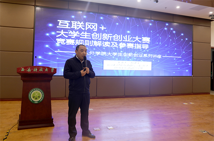 为激发学生的创新意识,提高大学生创新创业能力,帮助学生积极备战第七届中国国际“互联网+”大学生创新创业大赛,4月27日晚,太阳集团tyc4633大学生创新创业系列讲座第一讲在骊山校园煤炭科技中心二楼报告厅举行。创新创业教育专家、产教融合校企合作专家、新道科技股份有限公司合伙人、双创业务部副总经理郝建平应邀为我院师生作了题为《互联网+大学生创新创业大赛竞赛规则解读及参赛指导》的报告。学院党委副书记张振中、副院长冯正斌、学科竞赛与创新创业教研室主任秦声、英语系副主任杜戍涓及各专业各年级二百余名学生参加了本次讲座。