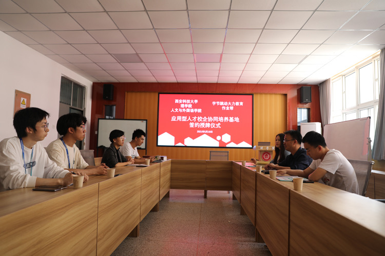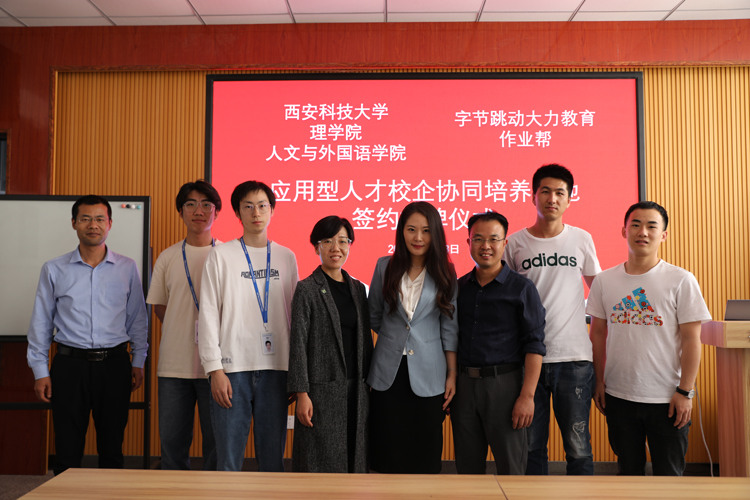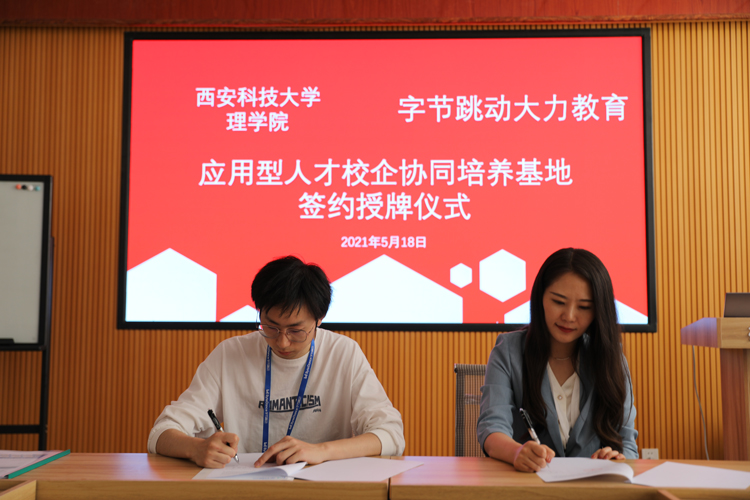 5月18日下午,太阳集团tyc4633、理学院与作业帮、字节跳动大力教育校企合作签约仪式在骊山校园举行。两院党委副书记张振中、高欣及辅导员侯斌刚、樊杰杰,两家企业招聘负责人徐振东、高俊强等参加签约仪式并座谈交流。张振中、高欣分别介绍两院概况及毕业生情况,希望双方通过校企深度合作为大学生搭建实习实训平台,拓宽就业渠道,切实提高学生实践能力,缓解学生就业压力,助力培养让企业满意、学校满意、学生满意、家长满意的综合性高素质人才。徐振东、高俊强表示,公司将以建立实习基地为切入点,积极参与学校人才培养方案的制定,充分发挥双方优势,提高学生竞争力和职业信心,充分发挥校企双方互相支持、优势互补、资源互用、利益共享的作用,最终实现学校、学生、企业三方共赢。