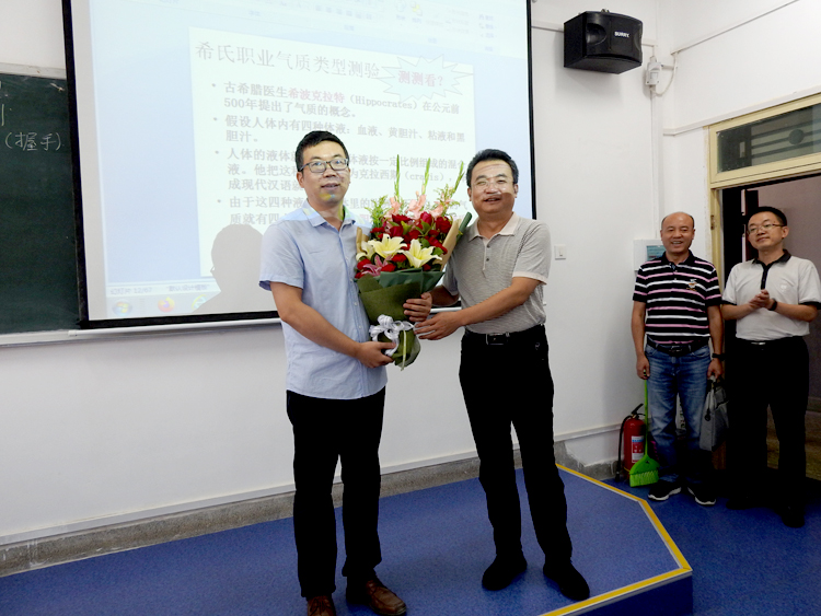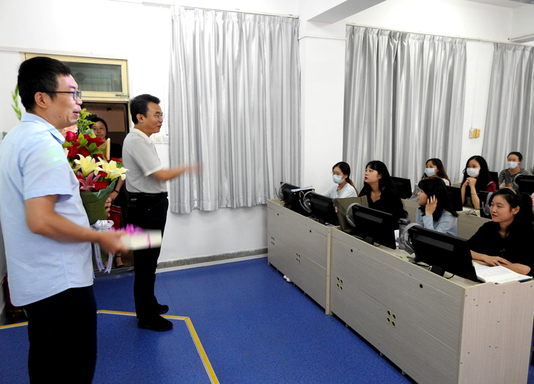 在第3节课课后的课间,樊建武来到2号教学楼502教室,代表学校向正值课间休息的教师乔辉教授送上鲜花和节日问候,并向其赠送了《习近平谈治国理政》(第3卷),对他取得的成绩给予充分的肯定,并代表学校对全院教师在为学校改革发展做出的积极贡献表示感谢,希望大家能够继续“不忘初心、牢记使命”,落实好“立德树人”这个根本任务,把学生培养成中国特色社会主义事业的合格建设者和接班人。同时,樊建武叮嘱同学们劳逸结合、注意锻炼身体,养成健康卫生的生活好习惯。