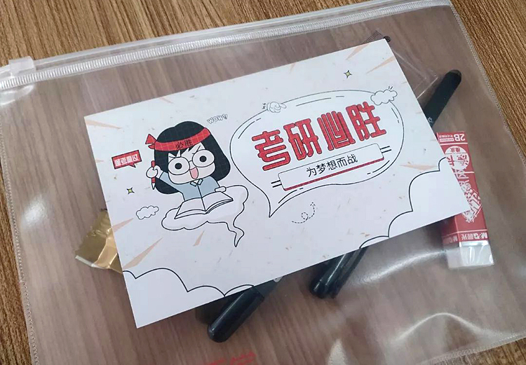 “十分感谢学院精心准备的礼包,太贴心了。” 报考苏州大学的汉语言文学1601李木子说,“我觉得我现在的状态还不错,没有太多焦虑,也没有什么畏惧,现在一切都已准备好了。”