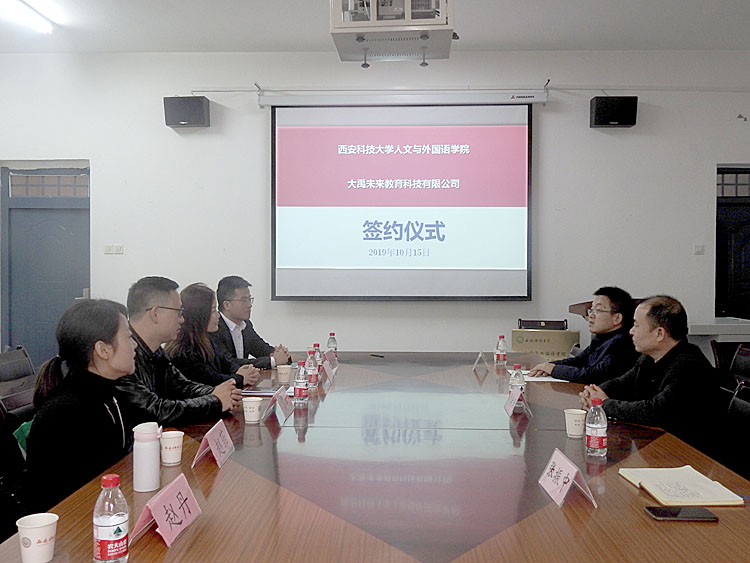 10月15日上午,我校太阳集团tyc4633与北京大禹未来教育科技有限公司授牌签约仪式在学院会议室举行。北京大禹未来教育科技有限公司总监崔仿婷及陕西地区机构负责人,学院党委书记费秀水、院长师新民、党委副书记张振中及师生代表参加仪式。