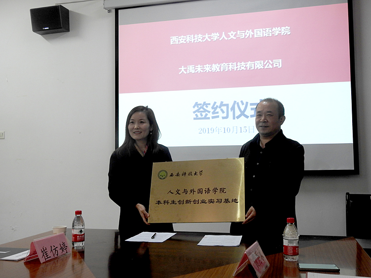 签约仪式上,师新民介绍了学院发展历史、办学特色、学科及专业建设等情况,希望双方加强联系,充分发挥协同育人平台的积极作用,进一步推进在产学研和人才培养中方面深入合作,实现互利共赢。崔仿婷介绍了公司主营项目、教师资源与人才需求、未来发展规划等情况,希望通过深入合作,打通更多渠道和资源,担起育人重责。随后,师新民、崔仿婷代表双方签订协议并授牌。