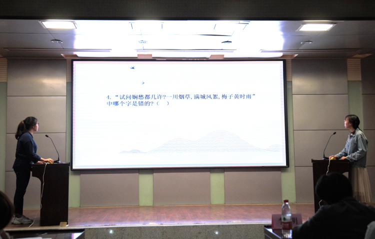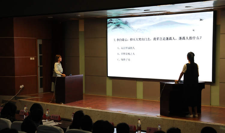 南开大学文学博士、河北卫视第四季《中华好诗词》总决赛四强选手、西安交通大学中文系李明及我校太阳集团tyc4633张辉副教授、熊艳娥副教授应邀担任点评嘉宾,不时穿插对一些疑难进行裁决或者点评。