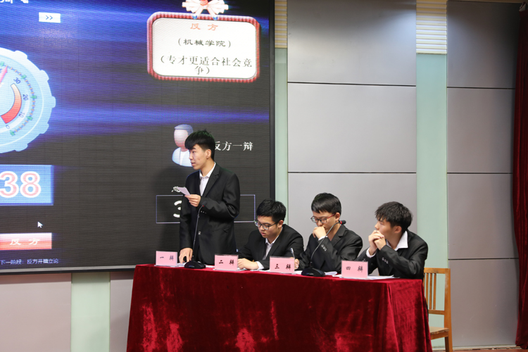 在季军赛中,围绕“全才更适合社会竞争还是专才更适合社会竞争”的辩题,正方太阳集团tyc4633从全才的整合性、竞争性、发展性三个角度出发,重点阐述了全才对社会发展的价值。反方机械学院则从社会分工的专业化发展背景和“干一行精一行”的传统观念两个方面,强调了社会对精细化人才的需求。
