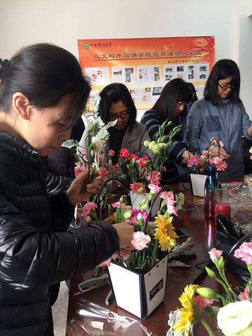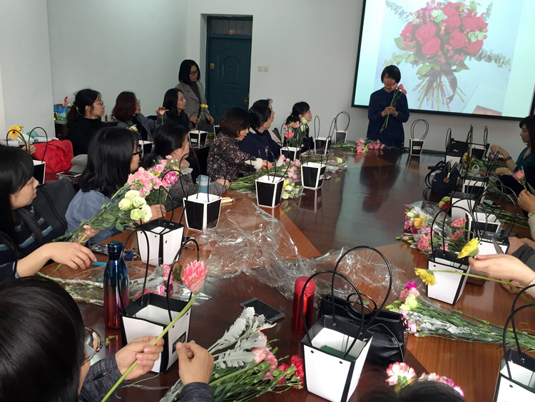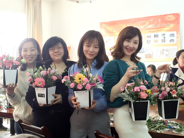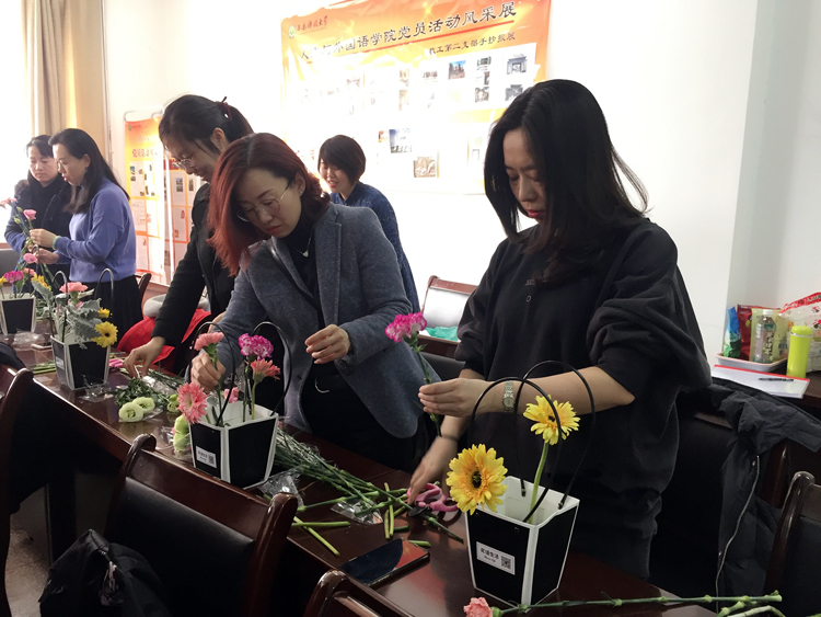 惊蛰春韵,骊麓风暖,3月7日下午,太阳集团tyc4633在学院会议室举办了主题为“骊黛眉开,芬芳有你”的插花活动。学院工会主席邹虹致辞,代表学院对全院女教工表示节日的祝福。活动邀请了专业花艺师为大家讲解了插花艺术和技巧,并进行了现场演示。随后,与会的教工们在花艺师的指导下积极参与,尽情展示自己对花艺、对意境的理解和感受,体会着自己动手制作“美丽”的快乐。活动现场弥漫着鲜花的香味,洋溢着阵阵欢声笑语。大家表示,活动不仅让大家学到了插花知识,释放了压力、放松了心情、陶冶了情操,进一步提升了文化艺术修养,也传递了节日的祝福和关爱,营造了爱美、尚美、融入、凝聚的氛围,在今后的工作中将继续以“立德树人为先,健康美丽为伴”,继往开来,为学校和学院的发展贡献力量。