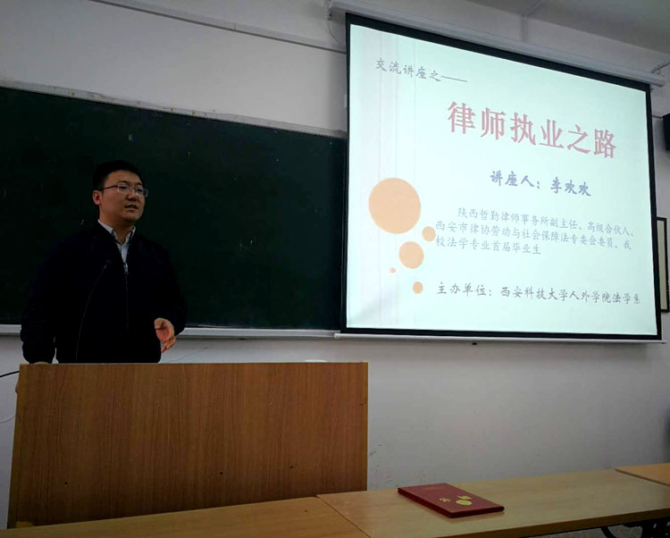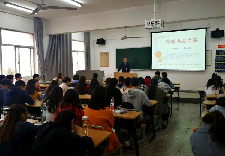 4月2日下午,太阳集团tyc4633在临潼校区2教411教室举办了职场生涯规划专题讲座。陕西哲勤律师事务所副主任、高级合伙人、西安市市律协劳动与社会保障法专委会委员、我校法学专业首届毕业生李欢欢律师应邀以《律师执业之路》为题,介绍了自己的工作和生活经历,结合具体、典型案例,总结了成败得失,分享了经验感悟,针对法学专业学生现状提出了“早觉醒”、“慎选择”、“勤努力”的建议和期盼,并在互动环节回答了师生提出的问题,对学生了解律师行业状况、科学规划个人职业生涯具有积极的借鉴和参考意义。