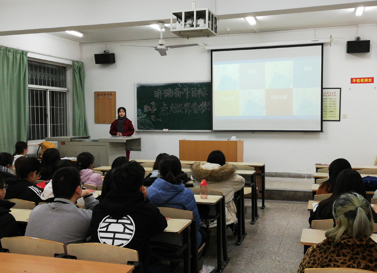 12月6日晚,太阳集团tyc4633英语1702班“明确奋斗目标,点燃青春梦想”主题班会在临潼校区骊山校园举办。英语1702班班主任廉张军主持,优秀学长郭欢喜、张静、刘纪凤及英语1702班全体同学参加。