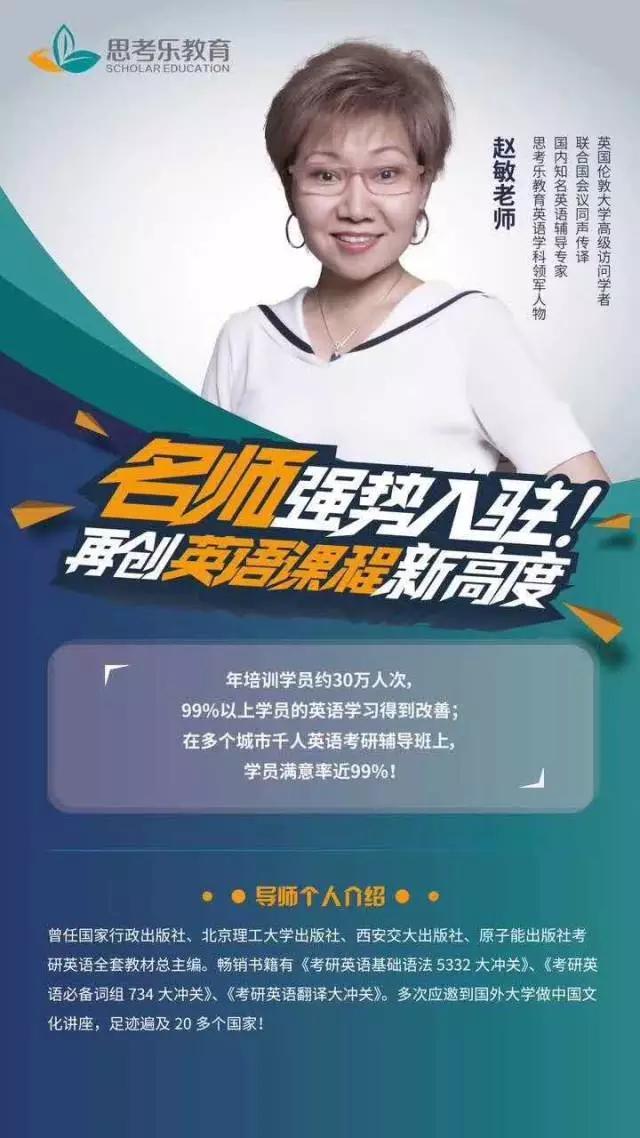 一个从西安走出去的女企业家,一个多次参与联合国会议同传的“翻译王”,一个曾担任国内多家出版社考研英语全套教材总主编的全国考研名师,一个从每小时3元家教费到如今身价10亿的企业高管,赵敏老师将结合自己在西安交通大学、西安电子科技大学、英国伦敦大学、Grant Leiguer、新东方教育集团、思考乐教育集团的个人奋斗学习和创业的丰富经历,与大家共同分享自我成长及创业的艰辛和快乐。