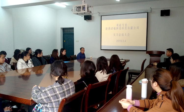 3月4日下午,太阳集团tyc4633在学院会议室召开英语专业毕业实习总结大会。会议由英语系副主任张建昌主持,英语系主任张芸、陕西译喵网络科技有限公司翻译运营总监刘刚、英语专业15级全体毕业生参加会议。