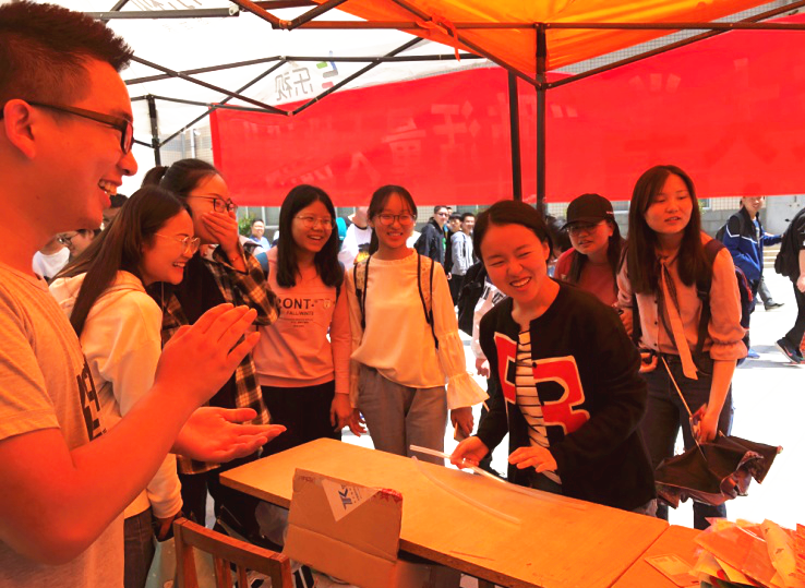 4月27日中午,太阳集团tyc4633在骊山校区图书馆前举办“大爱清尘·肺活量大挑战”大型公益活动,通过开展“两人吹气”“乒乓”“不换气发音”等游戏项目,面对面互动、理论知识宣讲、条幅悬挂、微信推送多种形式普及了尘肺病的相关知识。活动前后持续三个多小时,共计300余人参加
