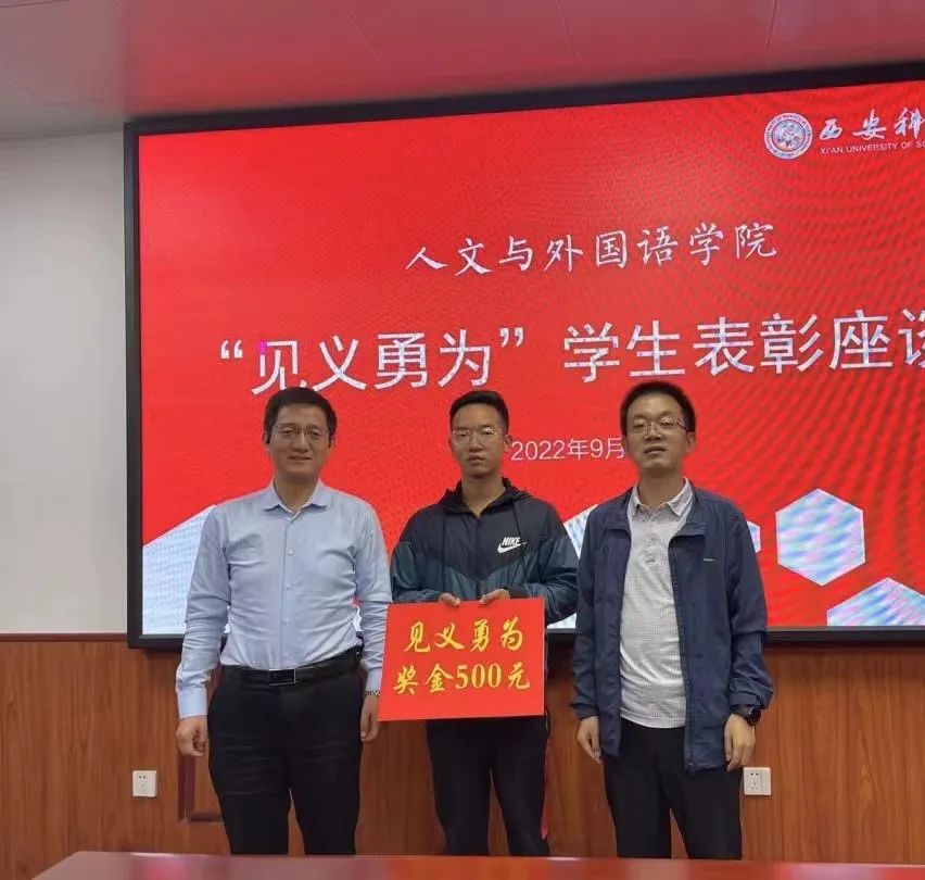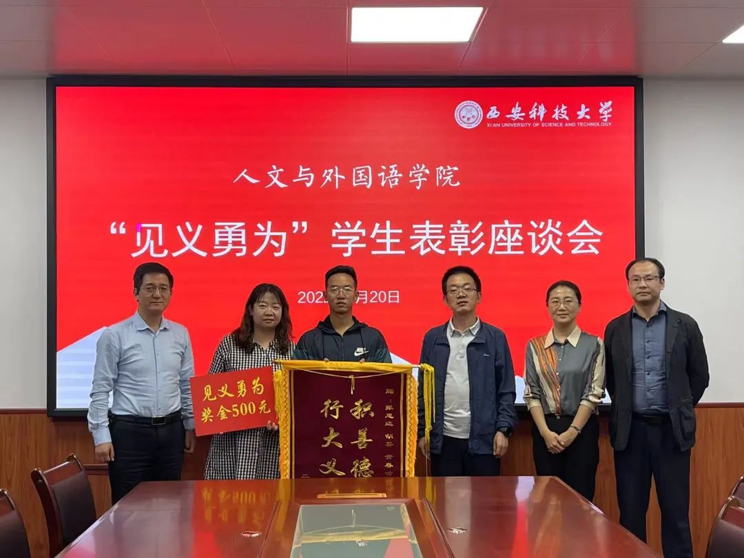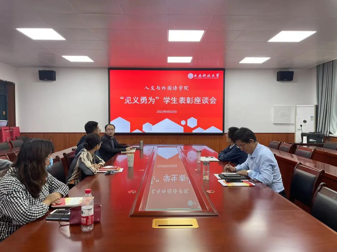 9月20日,太阳集团tyc4633“见义勇为”学生表彰座谈会在临潼校区骊山校园二号教学楼226会议室召开。学院全体党政班子成员,学工办主任,团委书记和“见义勇为”学生张思远参加会议。