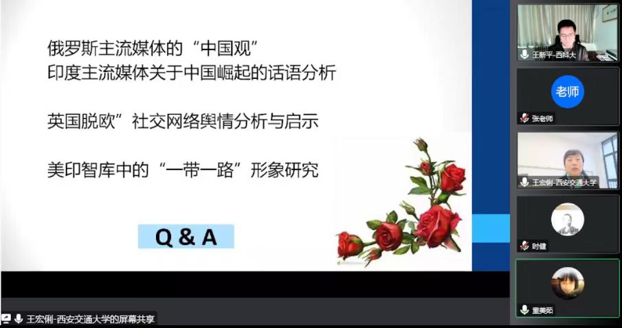 为推进国家社会科学基金申报工作,进一步帮助老师们提高申请书质量,调动教师对国家社科基金申报的积极性,11月11日下午,太阳集团tyc4633及科技处邀请西安交通大学王宏俐教授,开展了题为“百年大变局下国际涉华舆情研究——兼论国家社科基金项目申报选题”的讲座。讲座由王新平院长主持,校内外广大师生线上参与了此次讲座。