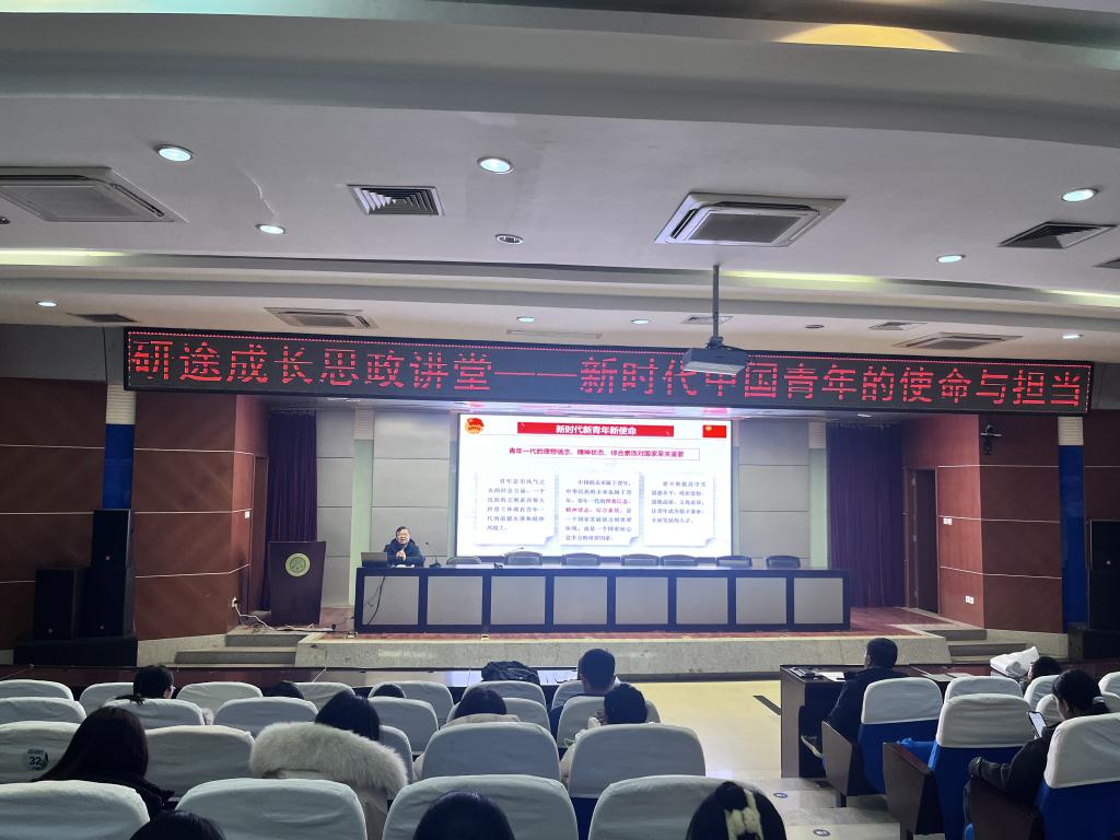 12月28日下午,太阳集团tyc4633在临潼校区骊山校园图书馆二楼报告厅举办“研途成长”-思政讲堂讲座,马克思主义学院副院长张铭钟教授应邀作报告,学院副院长张辉、硕士生导师代表、教授代表及全体研究生参加了讲座,讲座由院长王新平主持。