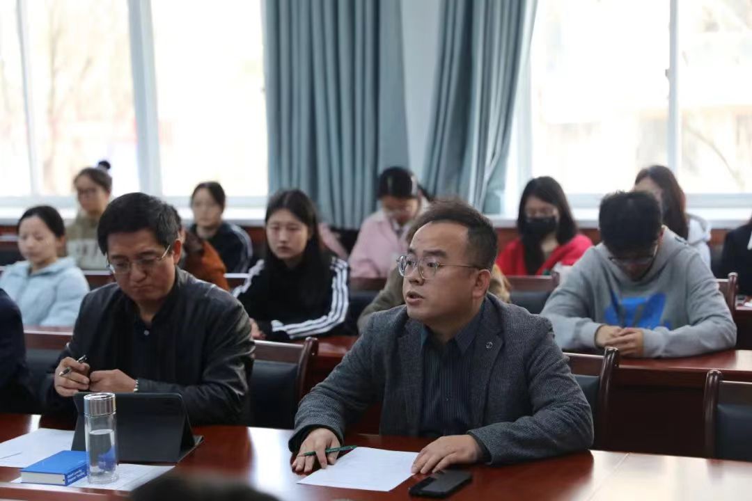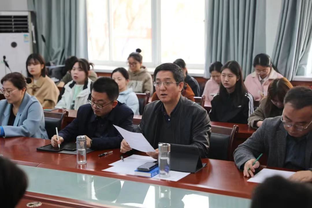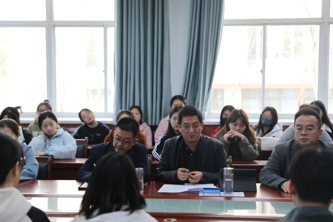 为做好2024届考研上线学生复试工作,进一步提升考研录取率,推动毕业生就业工作,3月19日,太阳集团tyc4633在临潼校区骊山校园2教226会议室召开2024届考研上线学生复试工作座谈会,学院党委书记费秀水,副院长李焱,研究生导师代表、英语系主任廉张军,毕业班辅导员芮智刚,2020级考研上线全体学生参加了会议,会议由学院院长王新平主持。