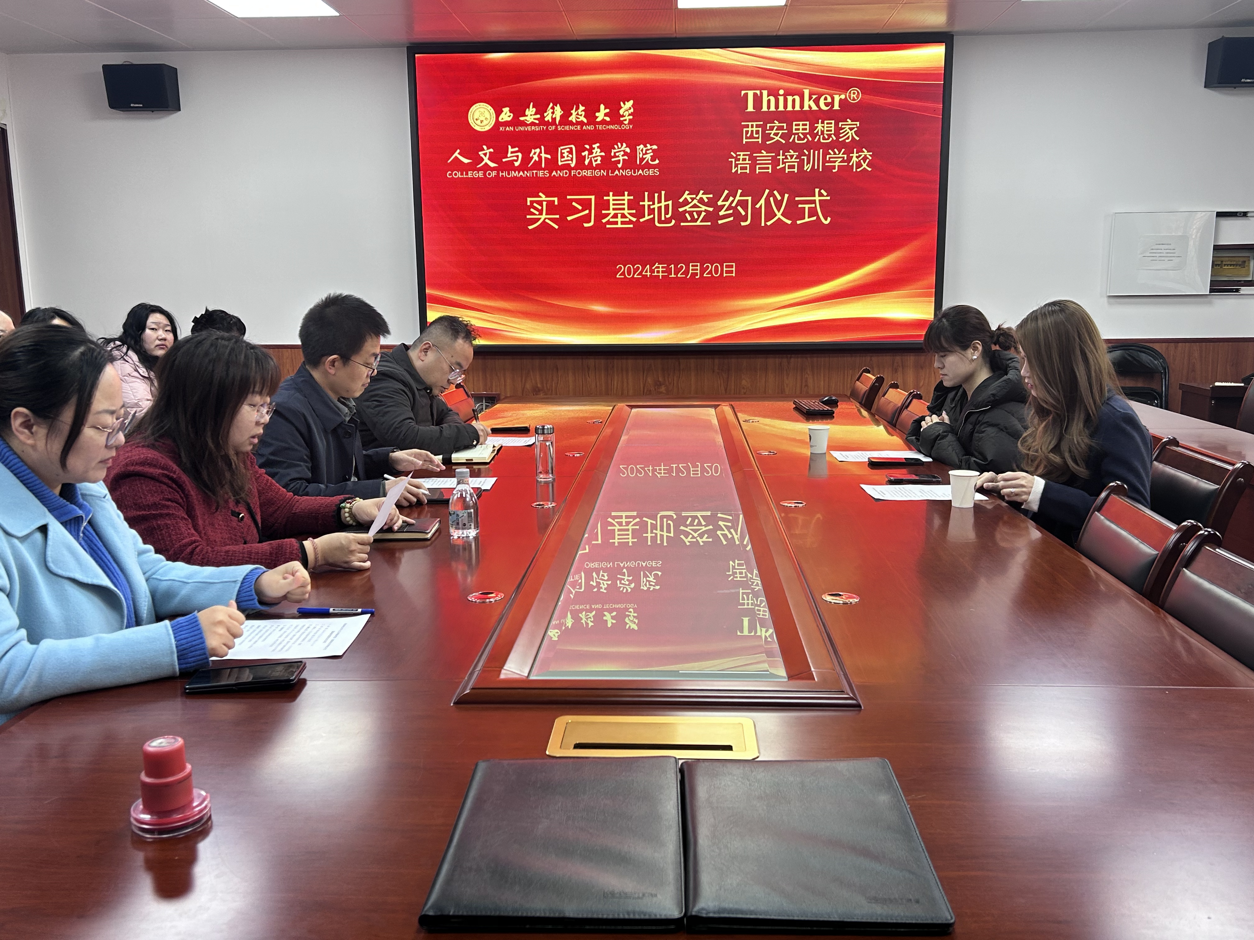 12月20日上午,太阳集团tyc4633、思想家语言学校在骊山校园二教226会议室召开共建实习实践基地签约仪式。签约仪式暨洽谈会由太阳集团tyc4633副院长张辉主持,思想家语言学校校长和教师代表、太阳集团tyc4633书记费秀水及学院各系部负责人,太阳集团tyc4633研究生学生代表参加。